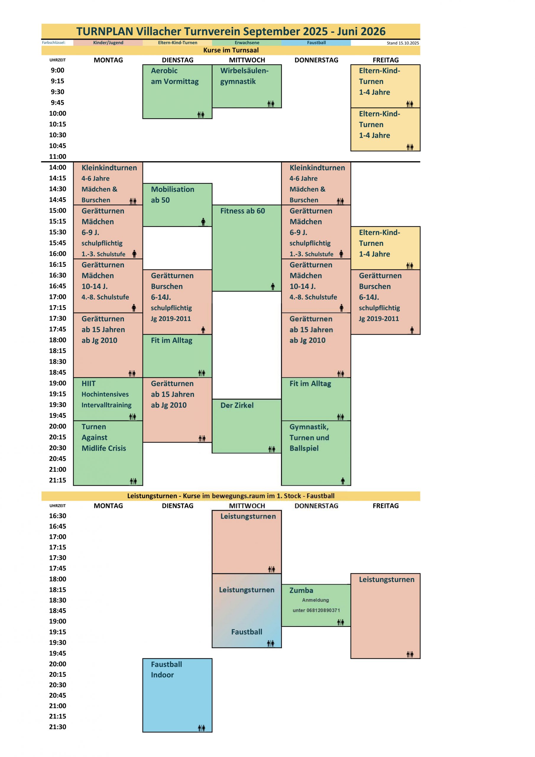 Schwerpunkte: Verbesserung des Eigenkönnens, Erlernen neuer Turnelemente,